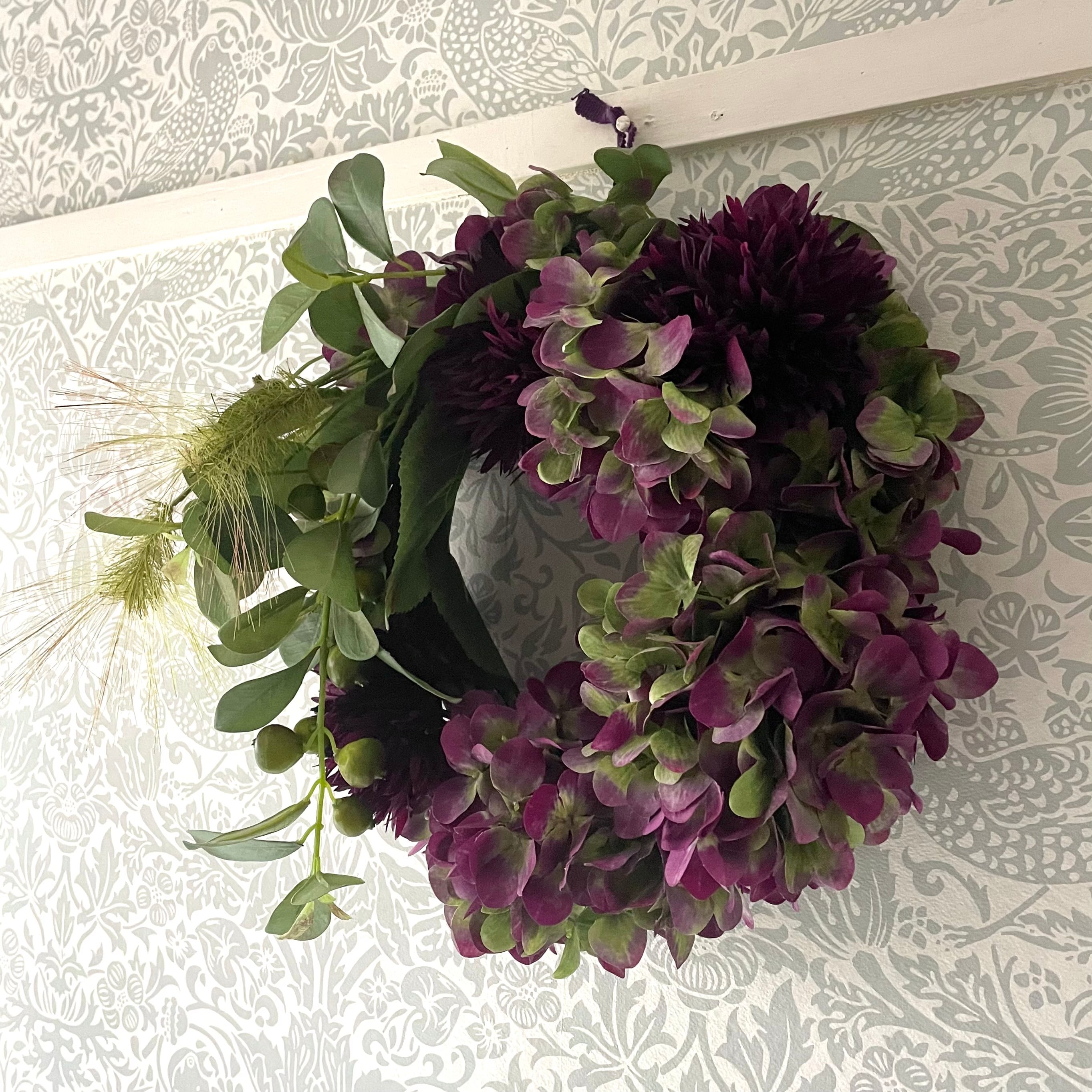 秋色紫陽花のリース
